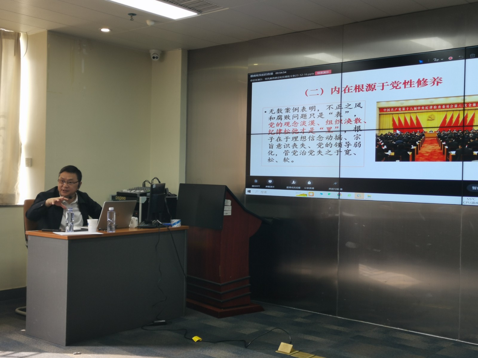 何良苏教授以“深入推进党风廉政建设与反腐败斗争”为主题,围绕“不正之风和腐败是党面临的严重威胁”、“不正之风和腐败问题生成的主要根源”、“推进党风廉政建设和反腐败斗争思路”三个方面,为大家进行了讲授和辅导。