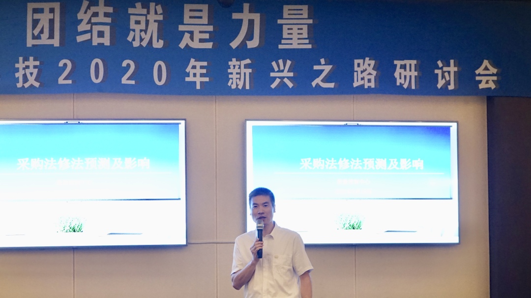 采联科技集团副总经理刘泽烨先生主持政府采购修法预测的研讨。