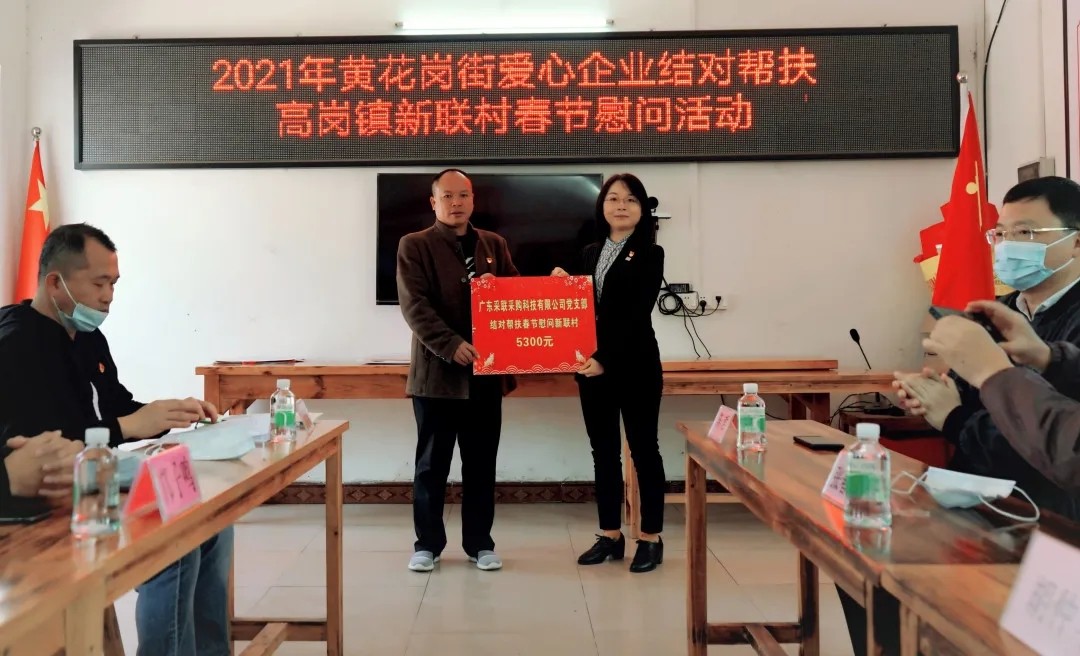 2021年1月29日上午9点,欧美又大又色又爽AAAA片作为爱心企业代表的一员,在黄花岗街党工委余昭辉书记、街道办事处副主任刘洁的带领下,在广东省清远市佛冈县高岗镇新联村村委广场,积极参加了现场的座谈会、捐赠仪式和入户慰问等环节。